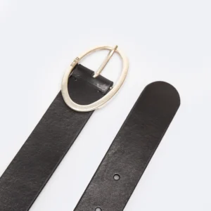 Pasek damski skórzany z owalną klamrą czarny 2411 906