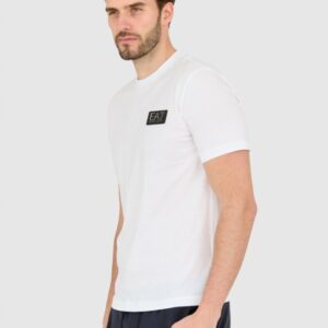 EA7 Biały męski t-shirt z naszywką z logo