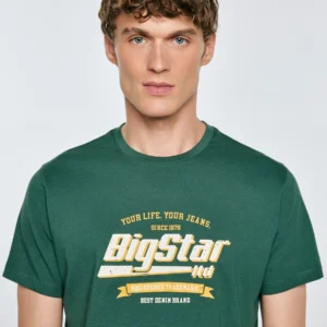 Koszulka męska z niewielkim nadrukiem na piersi zielona Irter 304