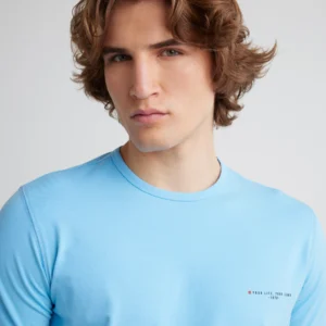 Koszulka męska z niewielkim nadrukiem na piersi niebieska Irter 401