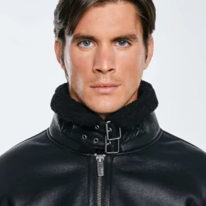 Kurtka męska pilotka z kołnierzem ze skóry ekologicznej czarna Nimo 906