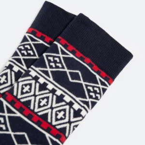 Skarpety męskie bawełniane w geometryczne wzory granatowe Santos 403
