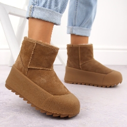 Skórzane śniegowce botki damskie na platformie camel Big Star OO274A212