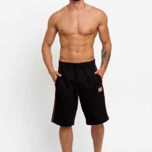 EA7 Czarne męskie szorty bawełniane z pomarańczowymi lampasami