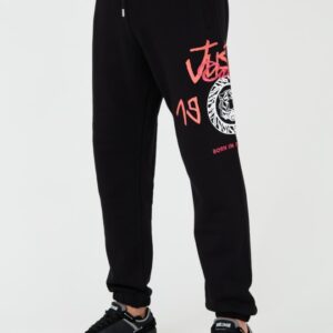 JUST CAVALLI Czarne męskie spodnie z nadrukiem R 1998 Dripp