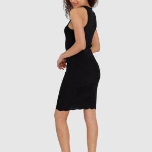 GUESS Czarna damska sukienka na ramiączka z trójkątnym logo