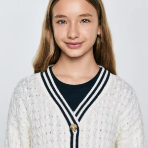Kardigan dziewczęcy z kontrastowym wykoŅczeniem kremowy Misia 102