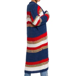 Długi sweter w kolorowe pasy kardigan narzutka z modnym splote