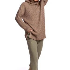 Długi sweter z miękkiej przędzy z wełną beżowy