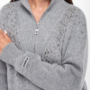 Gładki sweter z dekoltem w serek i ściągaczem szary
