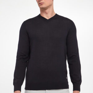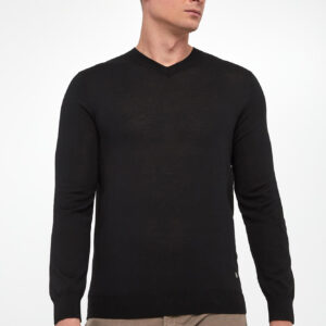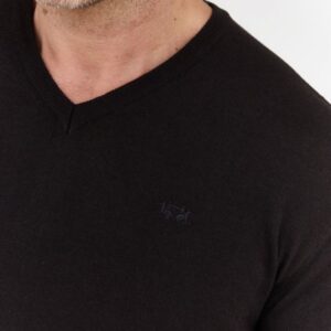 LA MARTINA Czarny sweter męski z wełną w serek
