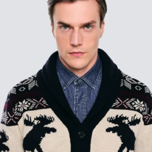 Kardigan męski ze wzorem skandynawskim bordowo-granatowy Lorenzo 000