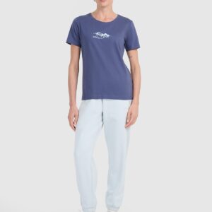 4F T-shirt regular z nadrukiem damski – niebieski