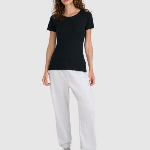 4F T-shirt regular z prążkowanej dzianiny damski – czarny