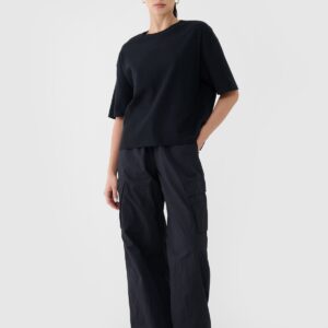 4F T-shirt regular z waflowej dzianiny damski – czarny