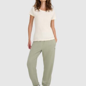 4F T-shirt regular z waflowej dzianiny damski – beżowy