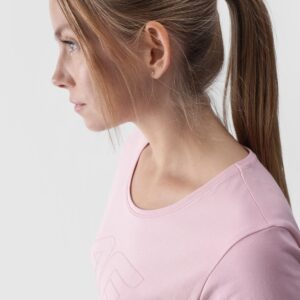 4F T-shirt slim z nadrukiem damski – jasny róż