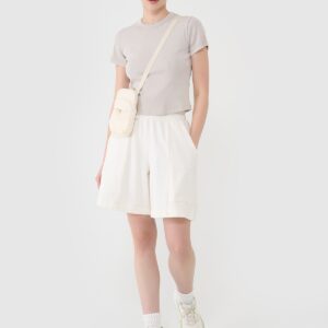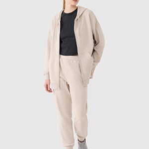 4F T-shirt slim z prążkowanej dzianiny damski – beżowy