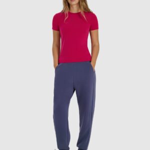 4F T-shirt z prążkowanej dzianiny z modalem damski – różowy