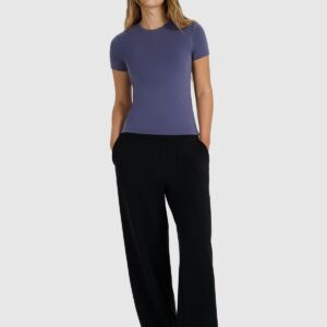 4F T-shirt z prążkowanej dzianiny z modalem damski – czarny
