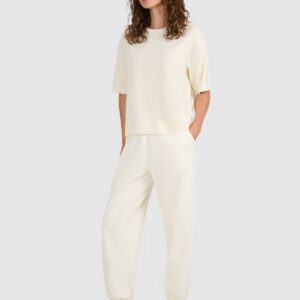 4F T-shirt crop top z waflowej dzianiny damski – biały