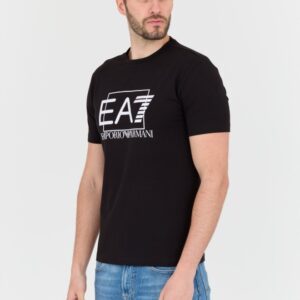 EA7 Czarny męski t-shirt z dużym białym logo