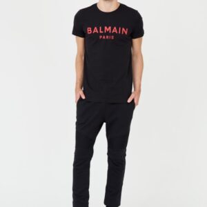 BALMAIN Czarny męski T-shirt z czerwonym logo