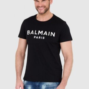 BALMAIN Czarny t-shirt męski ze srebrnym logo