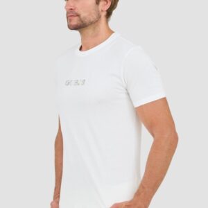 GUESS Biały męski t-shirt bawełniany z haftowanym logo