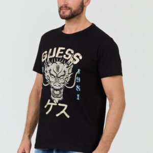 GUESS Czarny męski t-shirt bawełniany Dragon Tee