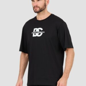 DOLCE & GABBANA Czarny męski t-shirt z dużym logo, Rozmiar 50