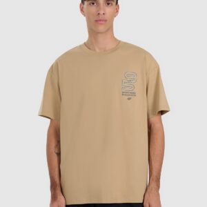 4F T-shirt oversize z nadrukiem męski – beżowy
