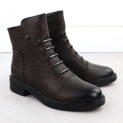 Botki damskie na płaskim obcasie ocieplane ciemna czekolada Jezzi ASA198-21
