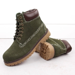 Skórzane zamszowe trapery męskie zielone Big Star OO174139