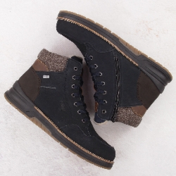 Skórzane wodoodporne trzewiki buty męskie ocieplane czarne Rieker F4544-00