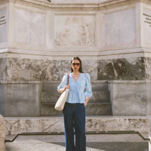 Jeansy damskie z szeroką nogawką niebieskie Atrea 195